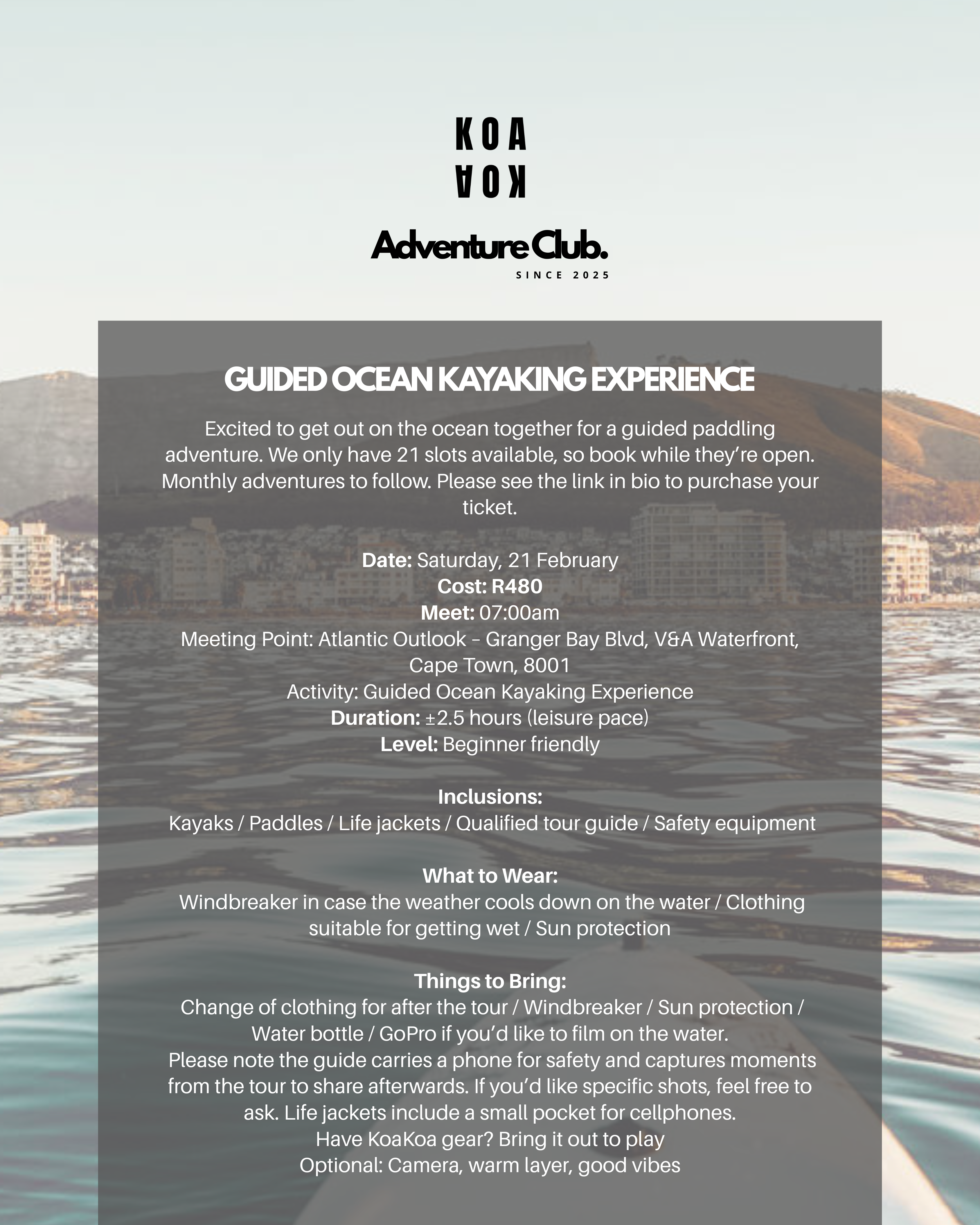 We’re beginning something new at KoaKoa this year. After a beautiful first hike to Kromrivier, we’re continuing with the next chapter: a monthly Adventure Club for women who want to move, explore, and connect in the outdoors. From hikes and surf days to ocean paddles, picnics, and nature-based outings around Cape Town, each gathering is an invitation to step outside together.